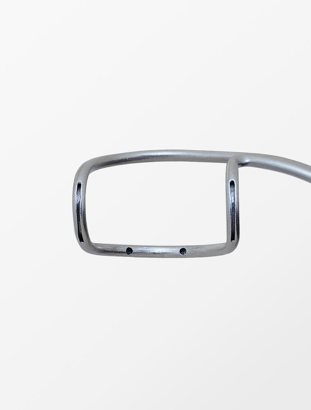 スリット孔によるベルヌーイの定理を用いた吸引に加え、丸孔を下方内面に追加することで、最大の吸引効率を得ました。耳側操作が主となる手術は勿論、あらゆる症例に対し、広く安定した手術可動領域を提供します。