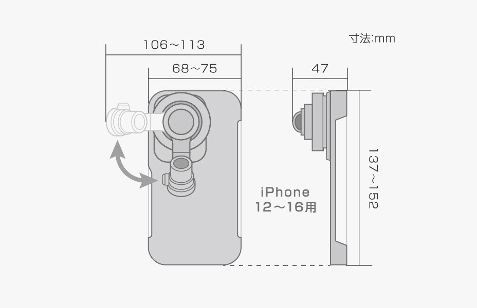 堅牢で衝撃に強いABS 樹脂製のアダプターが iPhoneを守ります。