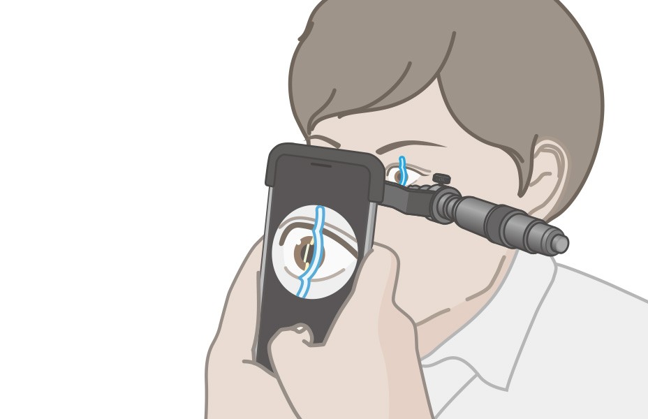 iPhoneに装着して使用する手のひらサイズのスリットランプです。