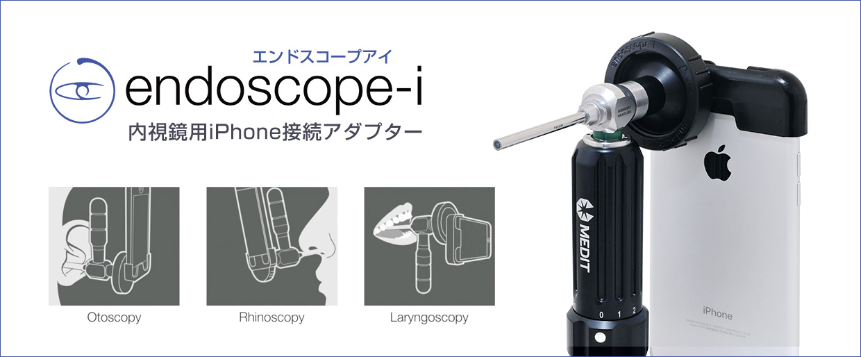 内視鏡をiPhoneに装着できるアダプターで、取付は非常に簡単です。 専用アプリe-iProを使用すると、露出や色温度、視野の調整も可能で、最適な撮影条件で録画することができます。 耳鼻咽喉科領域では、往診時のベッドサイドでの内視鏡検査や、嚥下内視鏡検査等で使用されています。