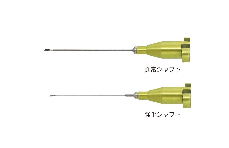 27Gおよび25Gの器具の剛性を高めるため、シャフトの根元部分を20Gに加工を施しました。EYE TECHNOLOGY社の27Gおよび25Gの全ての鉗子と剪刀に対応可能です。