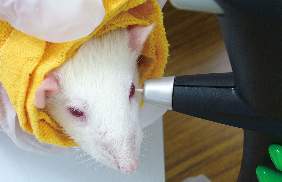 点眼麻酔が不要のため、薬剤に影響されない生体データが得られます。極小のプローブが角膜にやさしく接触して測定を行います。実験動物にストレスを与えないので、同一個体での経時的データ収集に最適です。