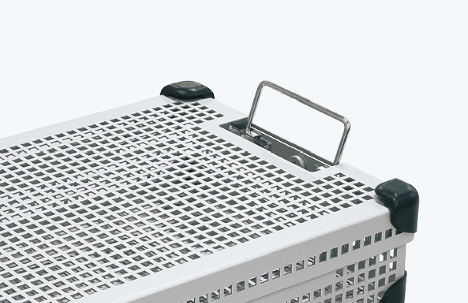 シリコン製のコーナーガードが滅菌ラップの破れを防ぎます。