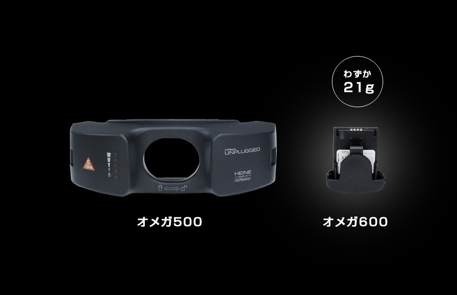 光量をアップさせるビジョンブースト機能を搭載。水晶体が混濁し眼底が見にくい場合に効果を発揮します。新開発のリチウムポリマーバッテリーの重量は僅か21g。オメガ500と比べて約30%の軽量化を果たしました。