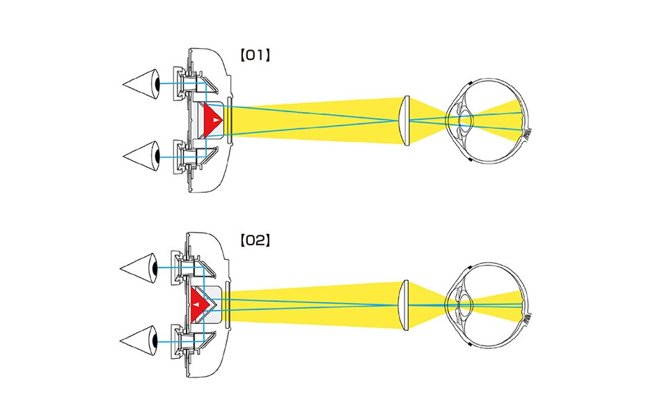 双眼倒像鏡検査を身近なものにした「瞳孔径に応じて行う照明光と視差の同時収束」の機能は更に進化し、小瞳孔眼における両眼視観察の精度を高めました。