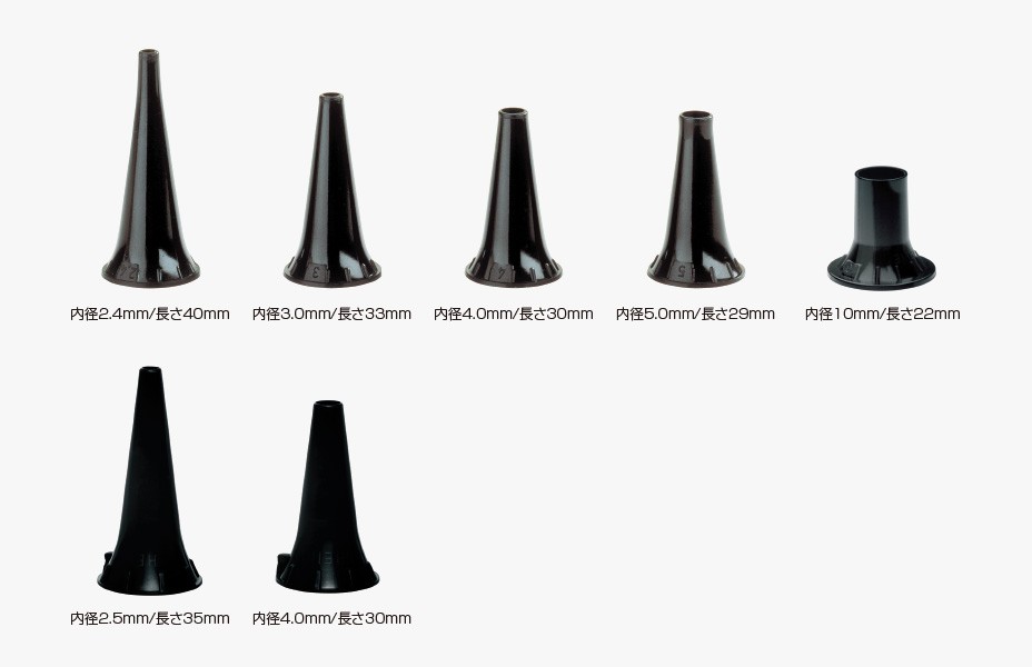 スペキュラは、ベータ200 LED F.O. 耳鏡と同じ5種類のリユーザブルスペキュラと2種類のディスポーザブルスペキュラが使用できます。
