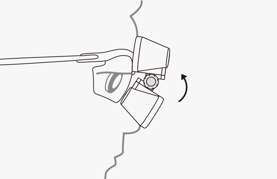 双眼ルーペ両端に取り付けられたノブの操作により光学部のみを上下に旋回させることができます。照明光はそのままで裸眼で観察を行いたい時に便利です。着脱式のノブは134℃のオートクレーブ滅菌が可能です。