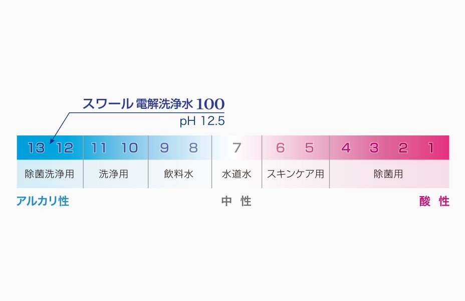 スワール電解洗浄水100は、独自の精製技術(PAT.3145347)により水のクラスター(分子集合体)を細分化し、汚れの内部への浸潤効果やタンパク質の溶解効果を高めた器具洗浄水です。