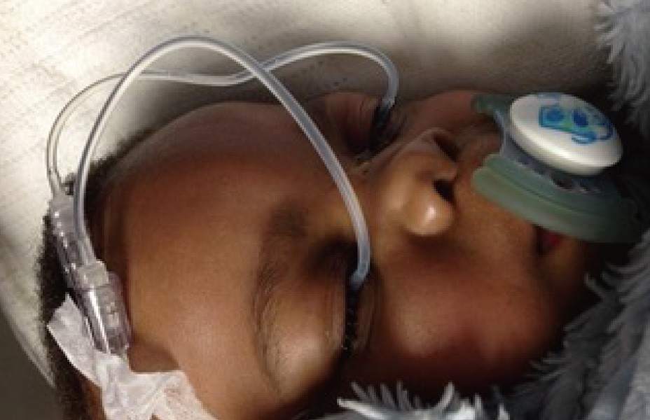 看護師の息子である生後1年4ヵ月のタイタスは、洗濯機の上に置かれていた液体洗剤を浴びて眼に化学熱傷を負った。母は救急外来に運ばれる前に、自宅で両眼を3〜5分間洗浄した。救急外来では表面麻酔剤を点眼した後、モーガンレンズを両眼に挿入し、乳酸リンゲル液で洗浄を開始した。タイタスはすぐに眠りについた。