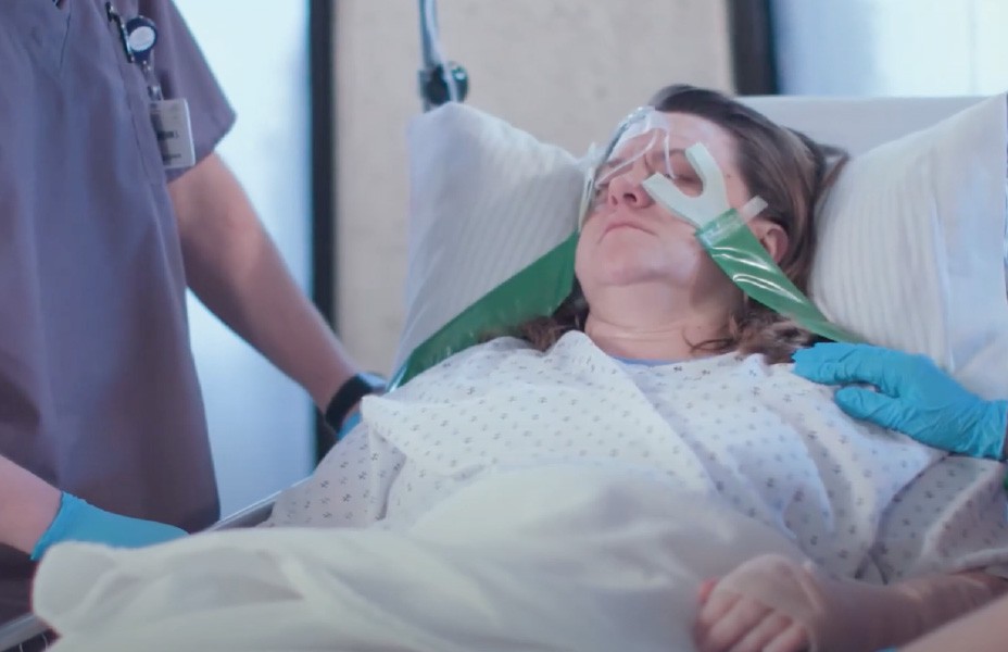 眼を閉じたまま、受傷した角膜や結膜を連続的に洗浄することができるので、眼にセットした後はハンズフリーで洗浄を継続。洗浄しながらの搬送や、他の部位の治療も可能です。