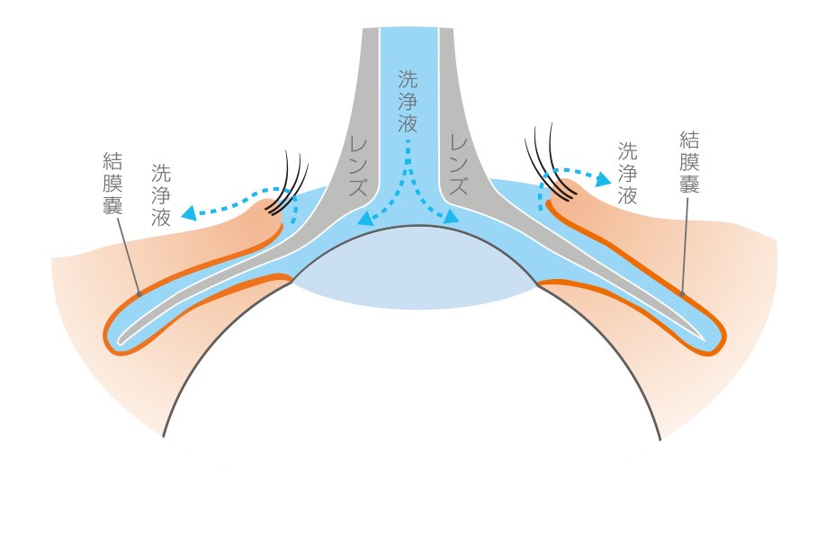 レンズは洗浄液により、角膜から浮いた状態で留まります。