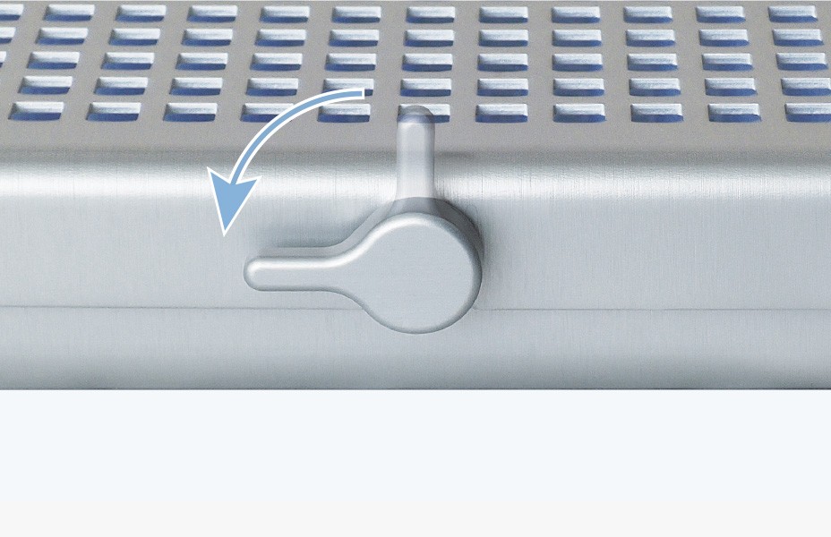 レバーを90°回転させロックします。フタが外れて落下する心配もありません。