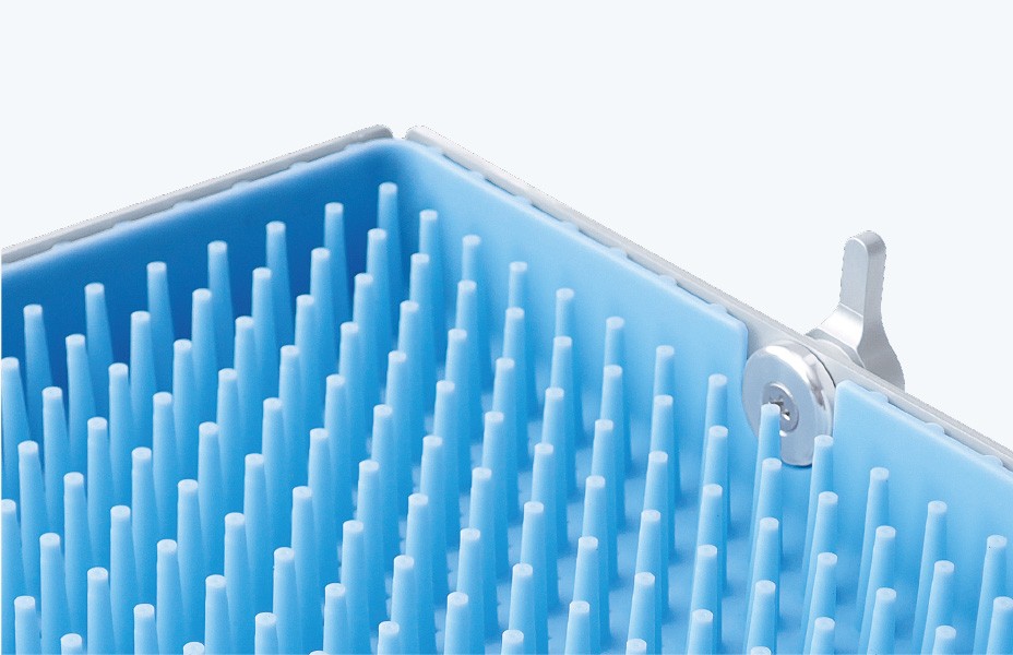 内部は壁面までシリコンで覆われており、収納器具の先端を安全に保護します。