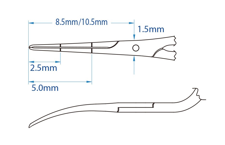 - 稲村氏カプスロレキシス鑷子 8.5mm 1.8mm切開用 ラウンドハンドル E